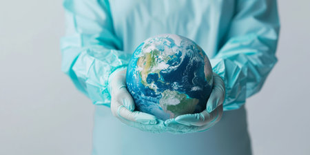 The doctor wear gloves holds the earth to save from viruses