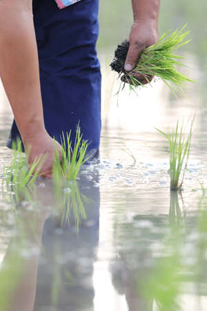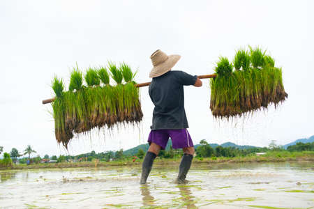 farmer work. farmer is preparation rice seedlings with soft-focus and over light in the background