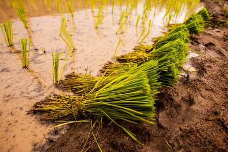 Rice seedlings in the field at sunset, Chiang Mai, Thailand