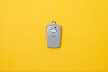 electronic control to open garage on yellow background
