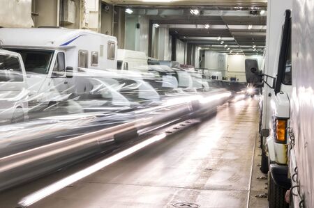 Vienna, Austria - Jul 21, 2011: Multiple cars vans driving fast in Austrian tunnel near the exit