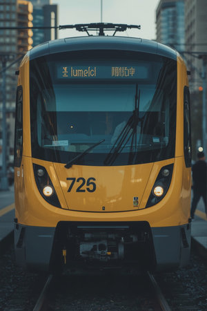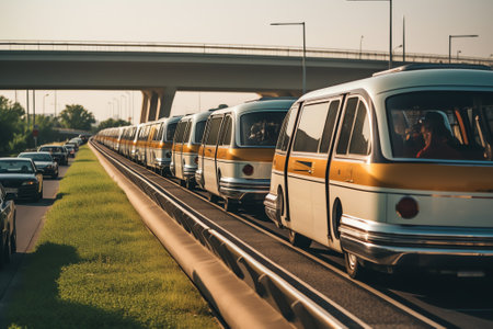 Generative AI : Sustainable public transport moving on green grass tracks urban infrastructure