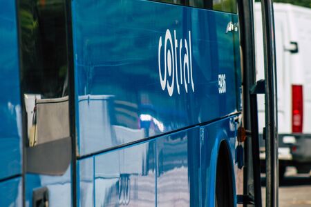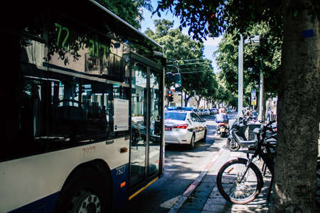 Tel Aviv Israel August 9, 2019 View of traditional city bus rolling in the streets of Tel Aviv in the afternoon