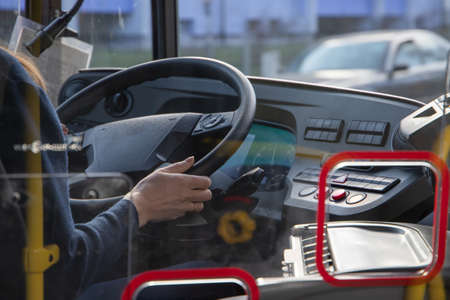 BARCELONA, SPAIN - Feb 02, 2020: Bus driver on street during COVID-19 confinement in Barcelona,Spain. Coronavirus Crisis