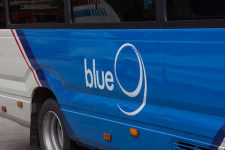 Chiangmai, Thailand - October 10 2020: Mini Bus of Blue9 Company, Toyota coaster. route Lampang and Phrae. Photo at Chiangmai bus station, thailand.