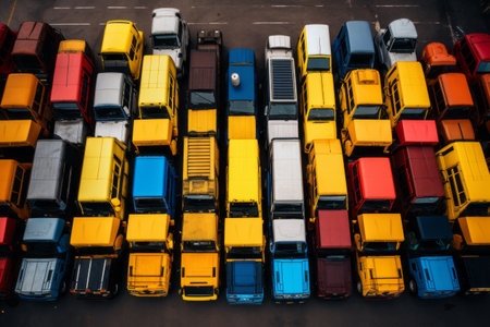 Vibrant Fleet: Captivating High Angle Shot of Colorful Trucks