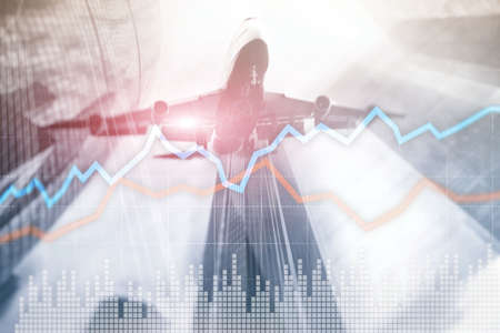 Business Financial Trading Investment concept graph virtual screen double exposure