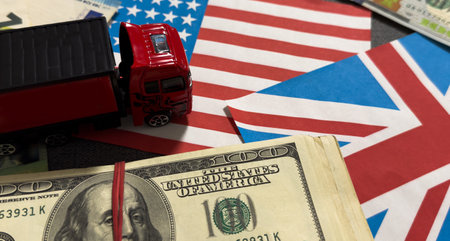 Flag United States America and Great Britain. Symbol cooperation and partnership. Concept political relations