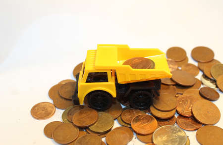 Toy dump truck with coins