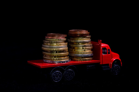 Transportation of Money for the Red Toy Truck Business Concept