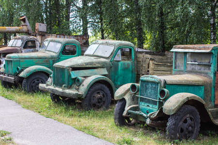 Rusty soviet retro trucks in Open air Museum of Folk Architecture and Folkways of Middle Naddnipryanschina in Pereyaslav, Ukraine