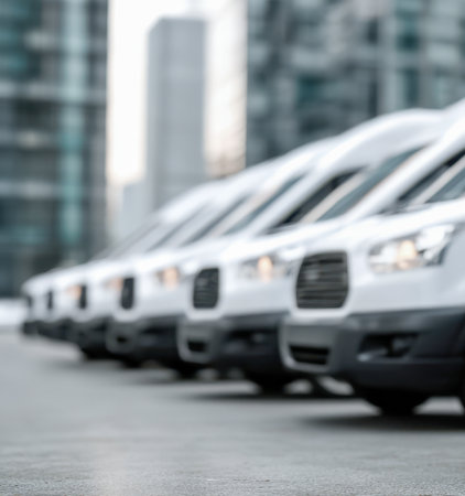Neat row of white delivery vans, representing reliable transport service with ample text space