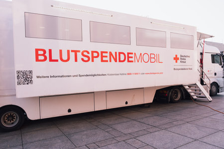 Mainz, Germany - Jan 24, 2026: Blood donation event taking place in Mainz with a mobile unit.