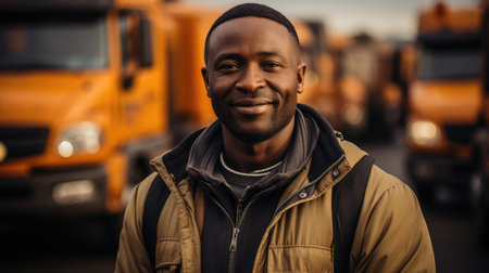 Portrait of Truck Driver in Front Truck extreme closeup. Generative AI