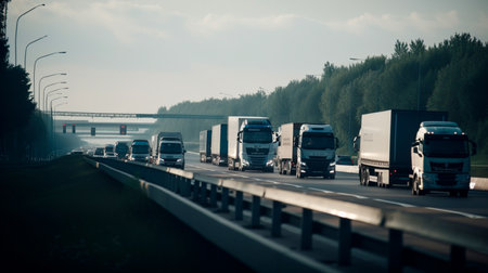 Truck drivers strike - trucks block the highway. Generative AI illustrator