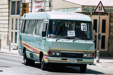 Limassol Cyprus May 21, 2020 View of a traditional Cypriot public bus rolling in the streets of Limassol in the morning during the coronavirus outbreak