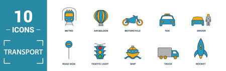 Transport Icon Set. Editable Bold Outline With Color Fill Design. vector illustration.