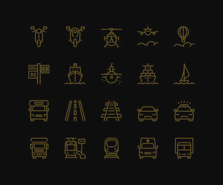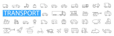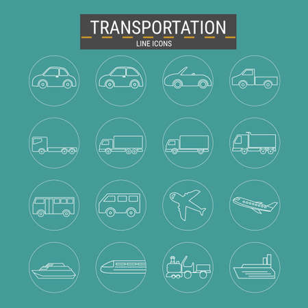 Transport line icons set. Vehicle icons. Transport types. Vector illustration. Transport, vehicle and delivery icons set. Line transport icons