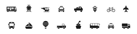 Simple monochromatic transport icons set