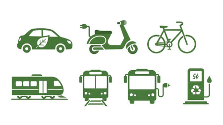 Set of green eco transport icons on white background. Vector illustration.