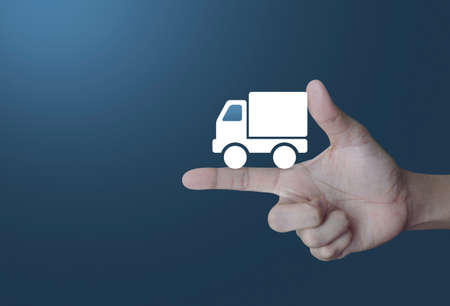 Truck delivery icon on finger over light gradient blue background, Transportation business concept