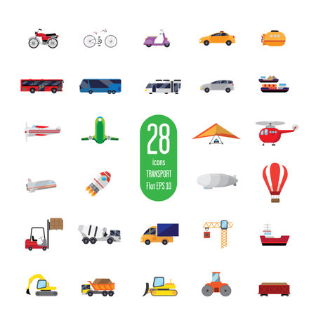 Vehicles flat style icon set design, Transportation travel trip urban motor speed fast and driving theme Vector illustration