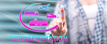 Woman touching a transportation concept on a touch screen with her finger