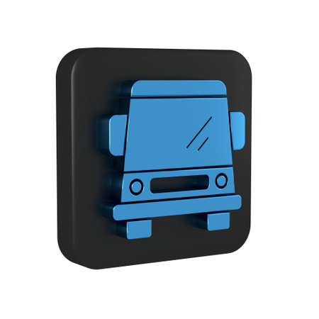 Blue Car icon isolated on transparent background. Front view. Black square button..
