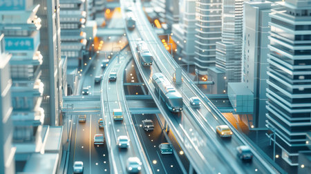 A captivating view of nighttime urban traffic flow on a multi-lane highway, showcasing dynamic movement of vehicles amidst beautiful lighting reflections and a vibrant city atmosphere.
