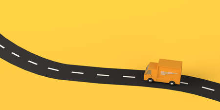 Delivery concept with truck on the road. Logistics. Copy space. 3D illustration.
