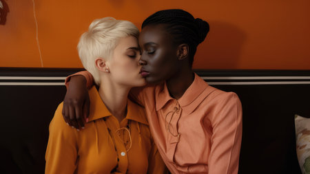 lgbtq, lgbt concept, homosexuality, two beautiful women showing their love to each other in a very warm home happily