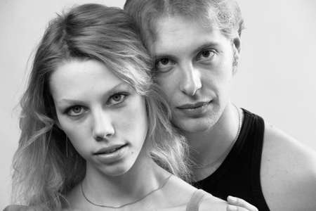 Portrait of pretty lesbo couple in pijamas embracing each other at home