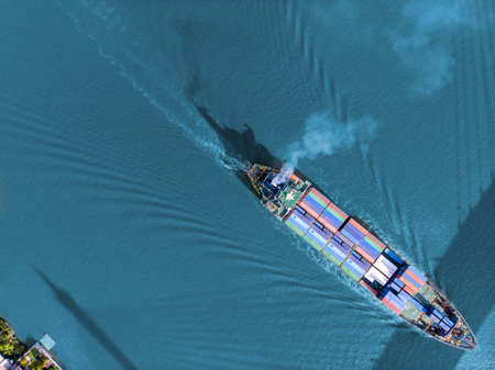 Aerial view container cargo ship sea freight shipping, Global business industry import export logistic transportation by container cargo ship, Container cargo ship commercial industry freight shipping