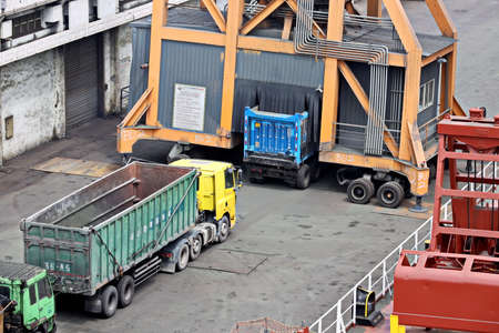 Nhava Sheva, India - March 09: Motor trucks in port of Nhava Sheva on March 09, 2018 in Nhava Sheva, India.