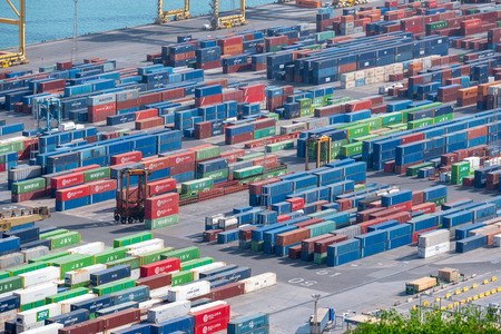 Aerial view of colorful container terminal, trade Industry Hong Kong China