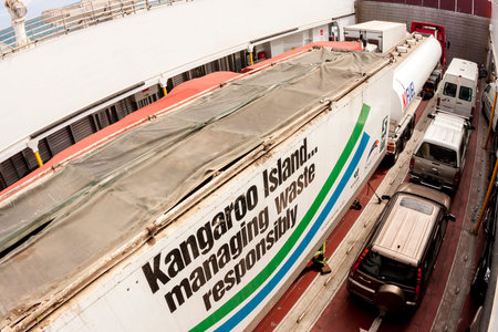 Kangaroo Island, Australia - January 2, 2009: Truck and cars on the ferry that goes to the Kangaroo Island, Australia
