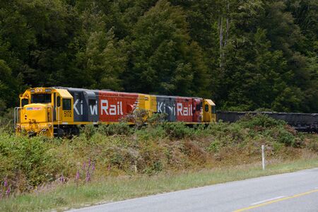 REEFTON, NEW ZEALAND, DECEMBER 21, 2015: A Kiwi Rail DX class locomotive diesel-electric locomotive enroute from Reefton to Otago on 21.12.2015