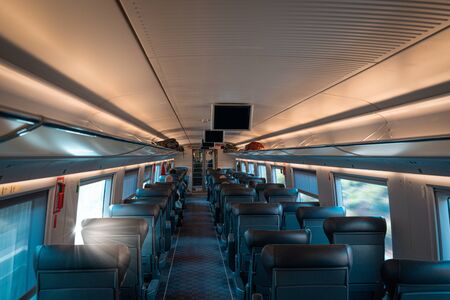 Latvia - 03.16.2020: interior view of train in Latvia