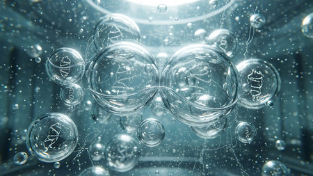 Discover a captivating image featuring shimmering bubbles with glowing particles set against a dreamy abstract background. Perfect for projects in science or art.