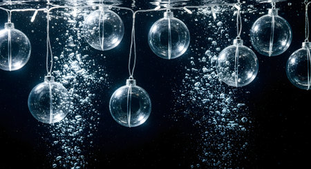 christmas light bulbs in the water with bubbles on a dark background