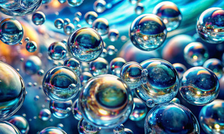 Iridescent bubbles create a colorful overlay texture with soft reflections