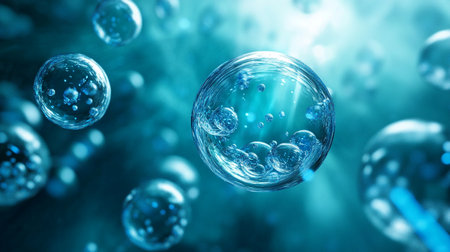 Ethereal digital artwork mastering fluid translucency and subtle light refractions in cool azure hues for a serene, immersive mood. Ideal for wellness apps, spa promotions, meditation visuals, aquatic therapy designs, and abstract environmental graphics targeting health professionals and creative agencies. Advanced rendering ensures scalability for web banners, poste... AI-generated illustration.
