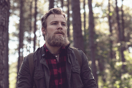 The best in male. male facial care. brutal man with beard. barber. hispter style. Fashion portrait of man. Hair beard care. guy in forest. summer camping. happy bearded man. Mature hipster with beard