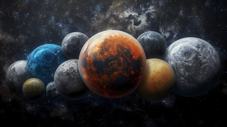 Planetary alignment showing the diversity of planets in terms of size and appearance Generative AI