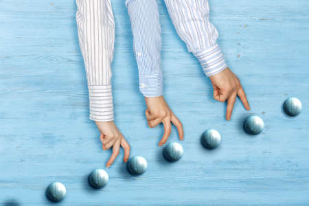 A photo of a carefully arranged marble composition on a white tabletop, capturing the beauty and variety of marbles