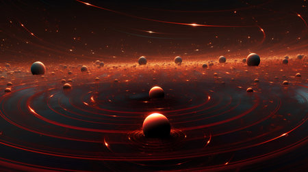 A stunning cosmic scene featuring a luminous sun at the center, surrounded by orbiting planets. This illustration captures the beauty of space and celestial mechanics.