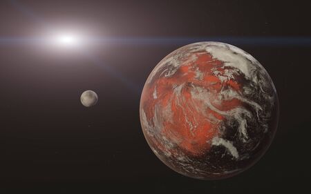 Colorful picture represents Mars white atmosphere and its moon solar system. .