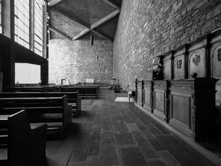 DUEREN, GERMANY - CIRCA AUGUST 2019: Annakirche (meaning St Anne church) in black and white