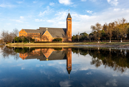 Church reflected in the lake in St. Augustine, Florida, USA.