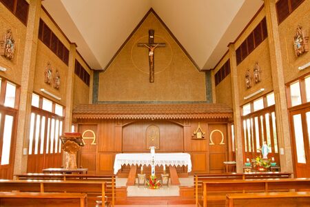 Decoration in wood catholic church, Nakorn Panom, Thailand